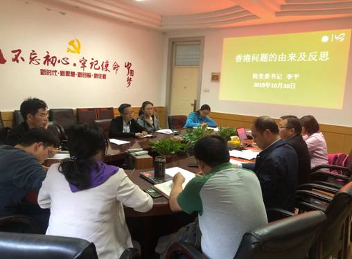10月30日下午,色情av 党委书记李平在17号楼225以“香港问题的由来及反思”为主题,为色情av 行政及实验中心党支部党员讲了一堂精彩生动的专题党课。