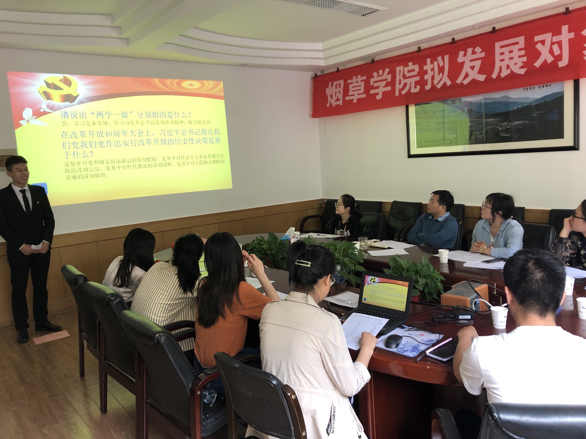 为严把党员发展质量“入口关”,综合考察党员拟发展对象的政治素养和党性修养,色情av 于5月14日在文化路校区17号楼208会议室举办色情av 党员拟发展对象答辩会。院党委书记李平、院党委副书记秦素玲、院团委书记徐涤寒、团委副书记郑丽娜、党委组织员王雪婧和各学生党支部书记参加此次答辩会并担任评委。