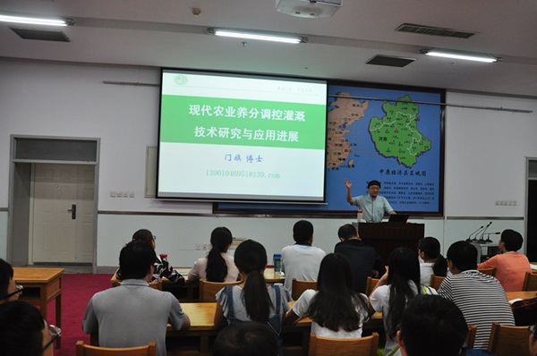 门旗博士经历丰富,知识渊博,观点新颖,在整整3个小时的报告里,通过大量的图片和数据讲解了4个方面的内容:作物灌溉技术的发展历史;田间灌溉现代物联网智能技术与决策;灌溉技术与产品研发(主要包括拖管施肥灌溉机、微压软管灌溉系统、压力补偿式滴头选择、地下滴灌、微咸水灌溉处理器等);作物营养原理与施肥技术等。