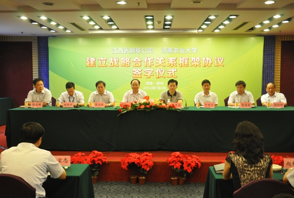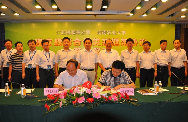 的合作,搭建创新平台、搞好技术创新,使江西省烟草能够在烟叶的特色、质量水平、生产规模上实现跨越式发展,对进一步提高江西烟草的综合竞争力起到推动作用。同时,顾总代表江西烟草公司向我校百年华诞表示热烈的祝贺,期望通过双方建立合作关系,达到互惠互利、共同发展。