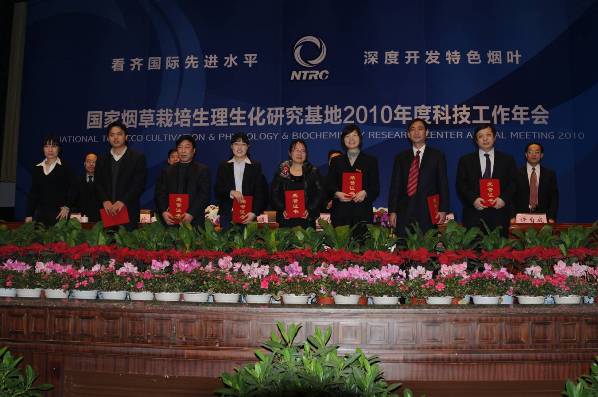 随后国家烟草栽培生理生化研究基地副主任许自成教授从科学研究、人才培养、技术服务与推广、重点实验室建设、成果专利、论文专著等角度全面总结了2010年度各项工作。年会邀请宫长荣教授介绍了获得2010年度中国烟草总公司科技进步一等奖的“烤烟适度规模种植配套烘烤设备的研究与应用”项目;年会特邀马新明教授作了“烟草虚拟技术研究进展”的专题报告;崔红博士介绍了在美国北卡州立大学开展合作研究的进展情况;邀请王新中博士报告了获准参评国家优秀博士论文的河南省2010年优秀博士论文“GIS支持下烟田土壤养分空间变异及精准管理”的报告。会议同时表彰了烟草学科2010年度优秀教师论文和优秀研究生论文。