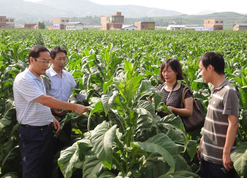 2011年7月31日至8月1日,许自成副院长、符云鹏副教授、宋朝鹏博士深入毕节地区公司秀水中海烘烤工场,从温度的调控等方面细心现场指导散叶密集烘烤;又查看了畜——沼——烟循环烟草、秀水生态肉牛养殖场;对河南农大色情av 李炜、法鹏飞负责的“植物生长调节剂对烤烟上部叶发育及品质的影响”课题进行了指导;对色情av 研究生牛路、陶金红、孙小伟负责的“毕节特色质量风格形成及化学基础研究”,云烟87、云烟97、毕纳1号试验田查看并细心指导。