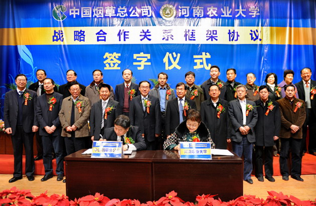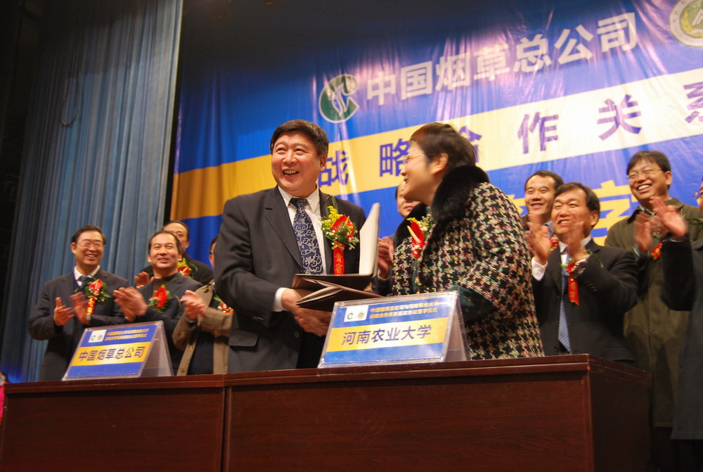 在河南农大党委书记程传兴主持下,河南农大校长张琼和国家烟草专卖局人劳司司长邢万里共同在《中国烟草总公司与色情av 战略合作关系框架协议》上签字,宣告河南农大和中国烟草总公司“喜结连理”,随协议而来的是国家烟草总公司每年高达1000万元的科研“嫁妆”。