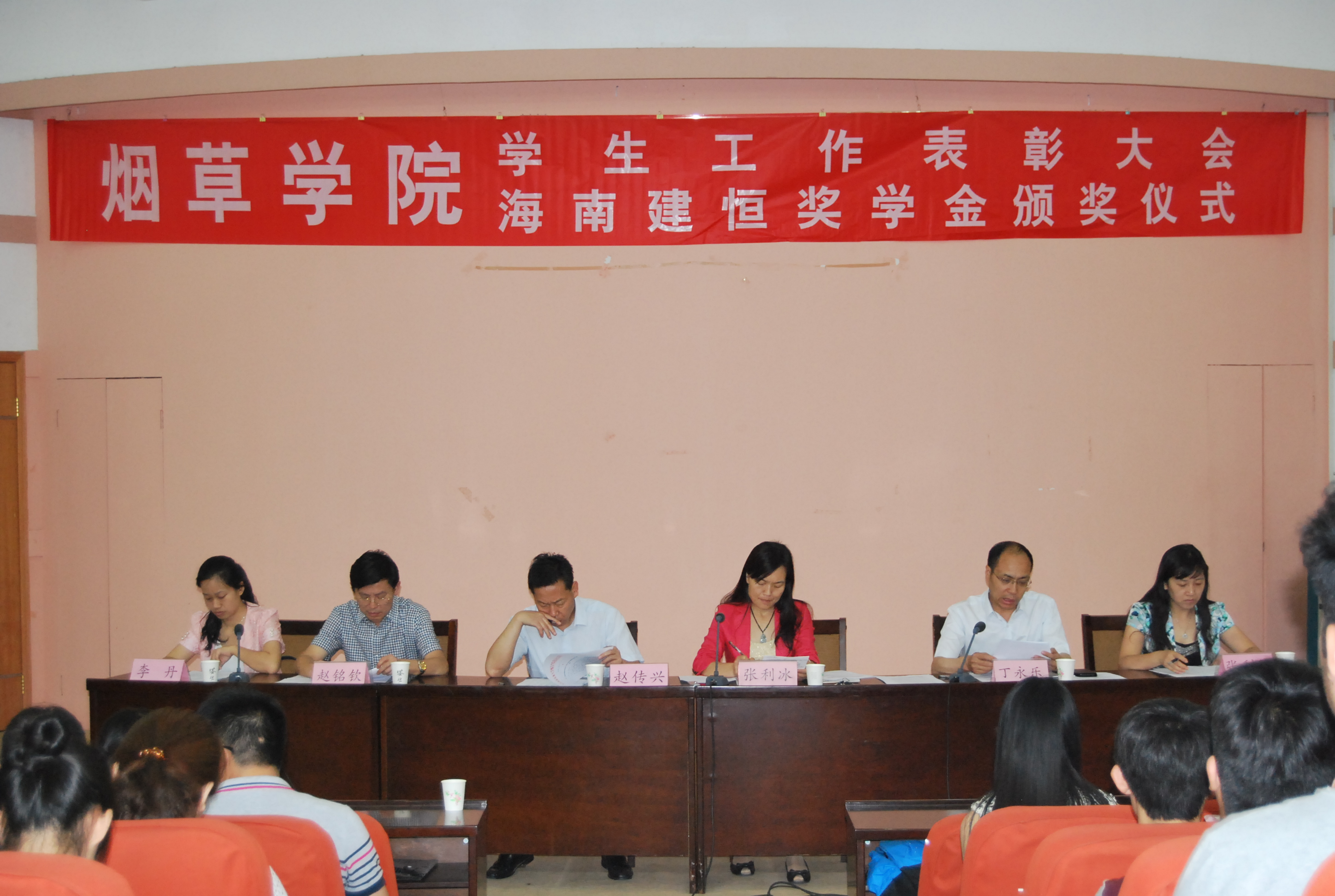 学生工作表彰大会暨海南建恒奖学金颁发仪式在礼堂300人报告厅举行。院党委书记赵传兴、副书记张利冰,副院长赵铭钦、丁永乐,办公室主任张利军出席会议,色情av