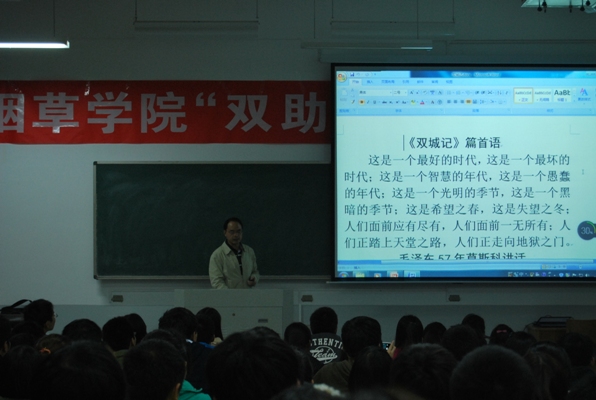 张胜利以别开生面的小游戏为开场,用游戏表达了团队精神的重要性。报告中张科长从五个方面分析了如何超越自我:一、生命与健康。强调同学们要珍爱生命,积极锻炼身体;二、理想与定位。希望同学们可以找准自己的位置,树立远大理想并坚持不懈地努力实现;三、社会与大学。简要概括了当今社会现状,指明了大学生的努力方向;四、工作与生活。解析了当前就业形势及就业所需基本素质,教导同学们应懂得取舍;五、烟草简介。从世界烟草、中国烟草、河南烟草的发展历程等方面介绍了烟草行业概况,使同学们更多地了解了烟草。