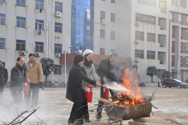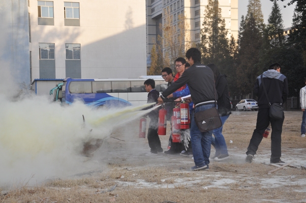 讲座后的消防演练,师生代表轮番上阵,手执灭火器,面对熊熊烈火,亲身体验了灭火的实战过程。