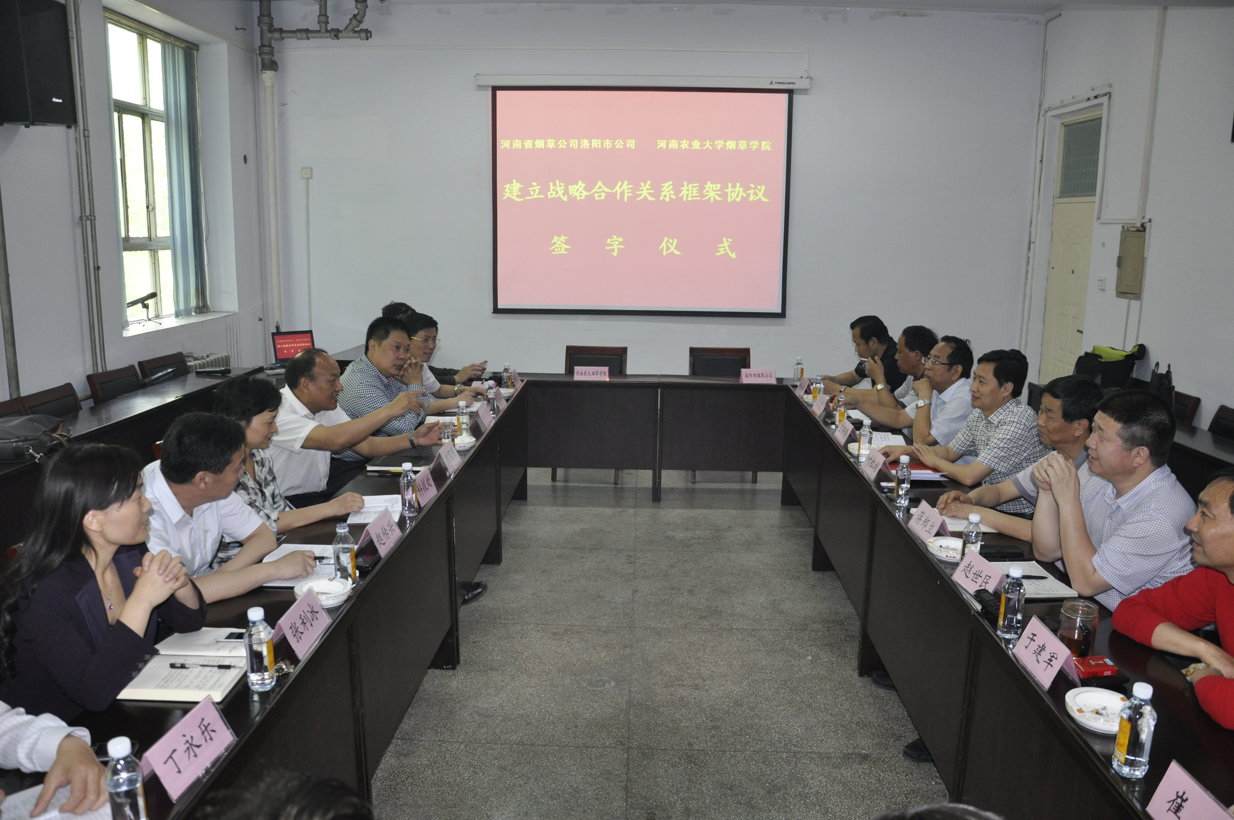 的合作,把学校的人才、科研和技术平台引入洛阳烟草,搭建创新平台、搞好技术创新,使洛阳烟草能够在烟叶的特色彰显、品牌提升、质量提高、规模扩充上实现跨越式发展,期望通过双方建立合作关系,达到互惠互利、共同发展。