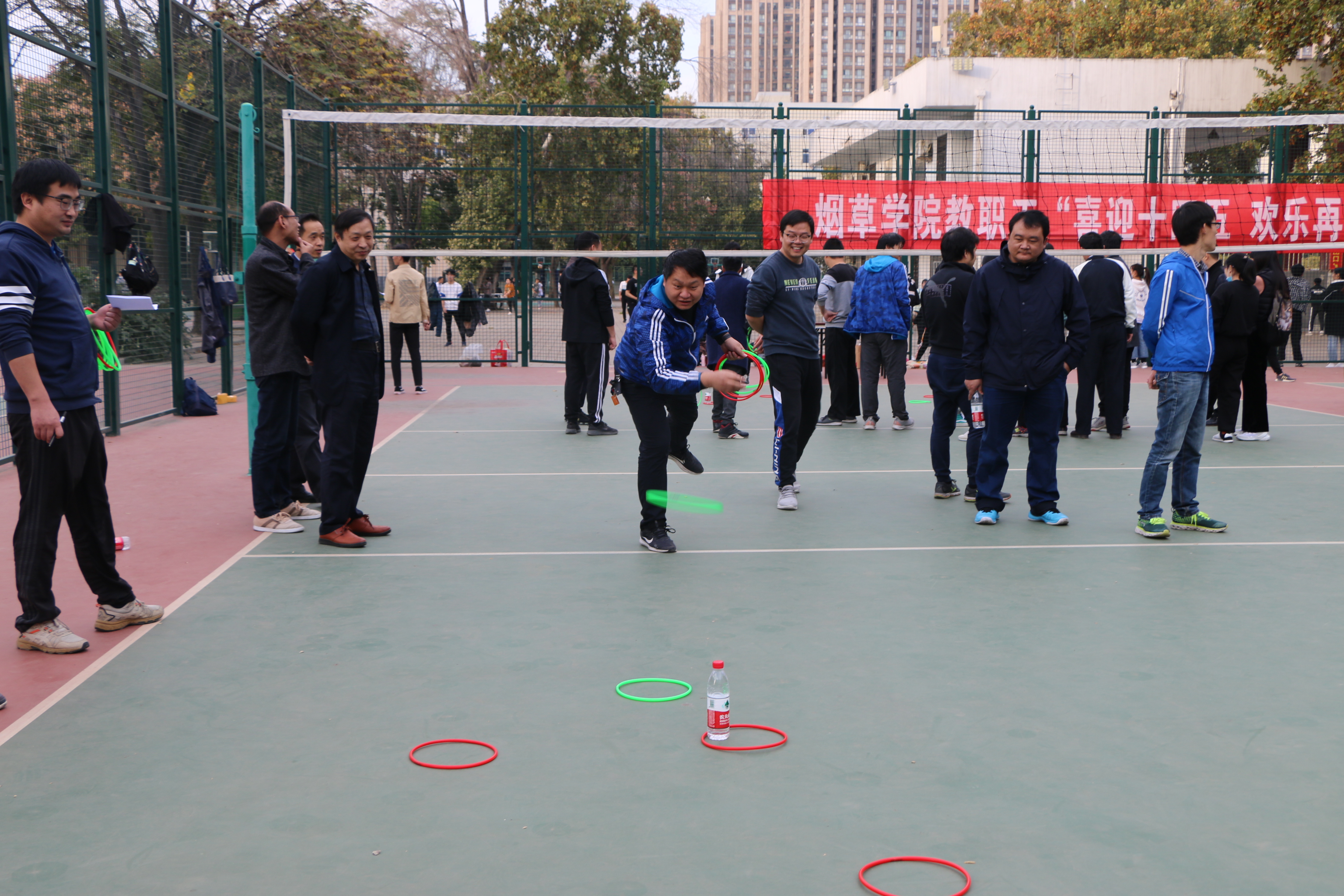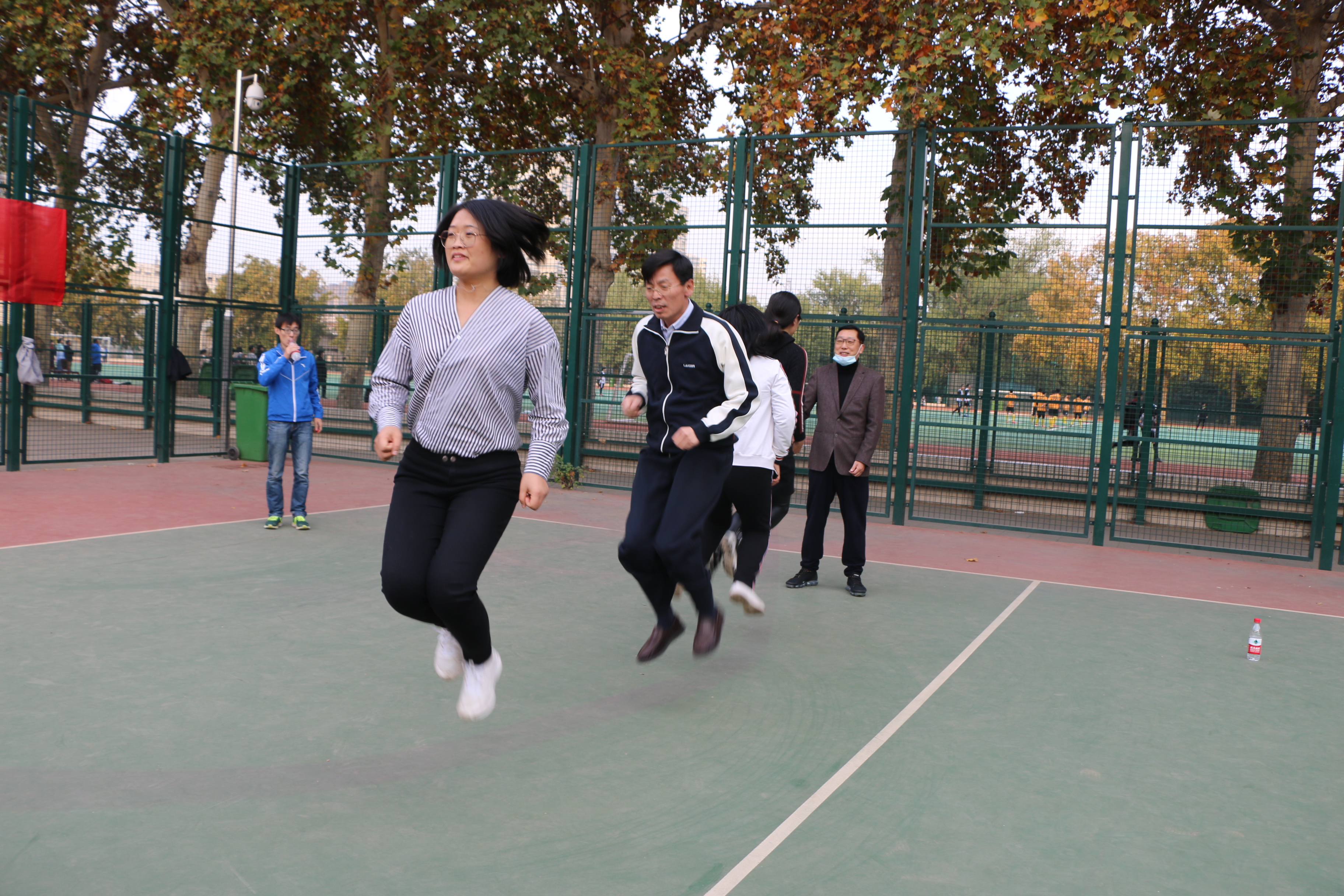 本次活动内容丰富、形式多样,集竞技、娱乐、锻炼为一体,共设有排球友谊赛、跳大绳、运球往返跑上篮、踢毽子、套圈五个比赛项目。比赛场上,教职工们热情高涨、争分夺秒、奋勇争先,赛出了个人的风采,充分展现出团结协作的精神风貌和集体的凝聚力。比赛项目欢乐有趣,精彩瞬间不时迭现,教师们在竞技的同时也交流着感情,大家秉承友谊第一比赛第二的理念,不断为彼此加油喝彩。