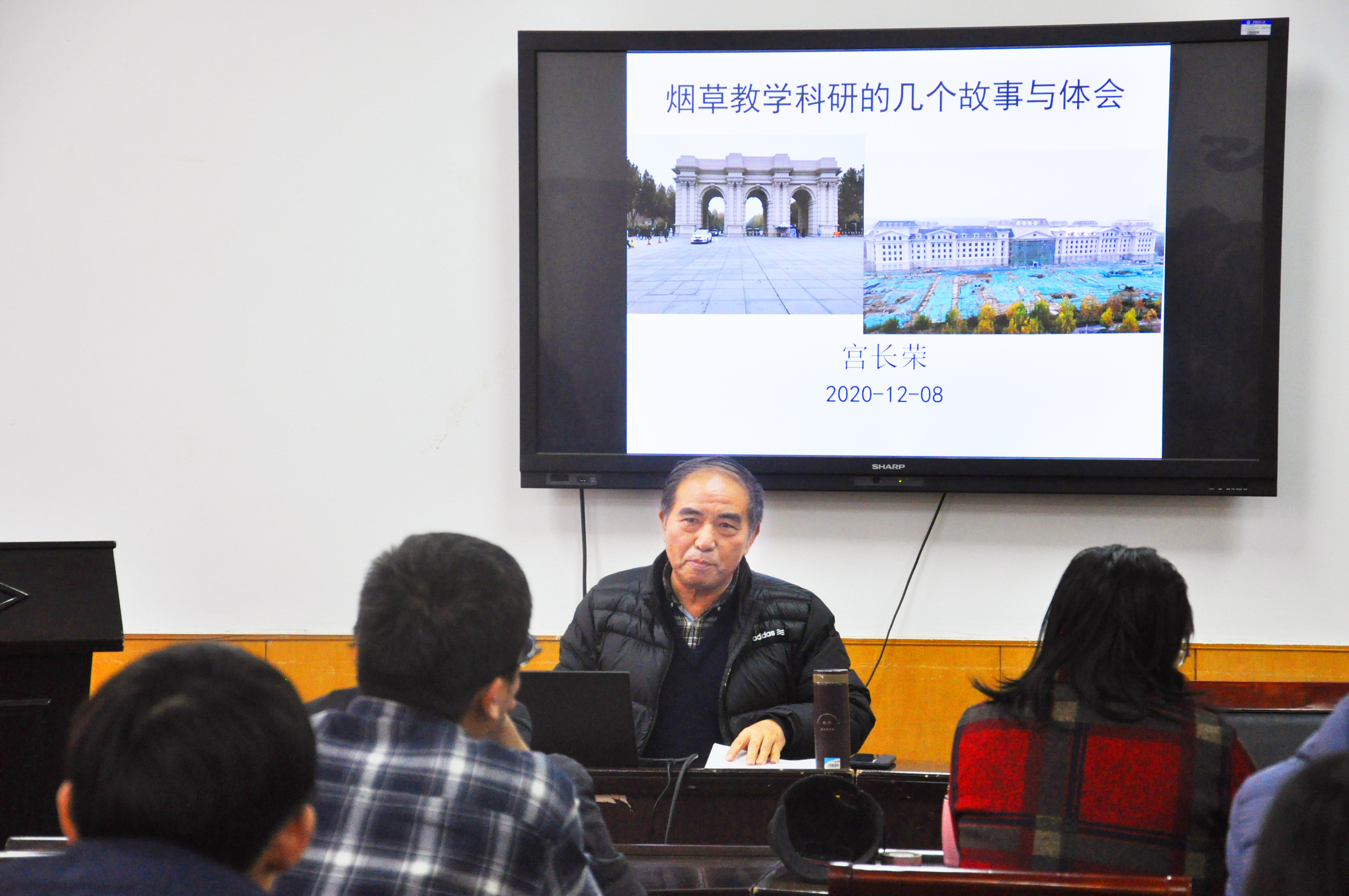 与行业关系、烟草教学、烟草科研与生产、个人体会四个方面,以三段式烘烤技术、密集烤房、热泵烤房科研过程中的故事为载体进行了讲解,为老师们做好教学、科研与社会服务工作提供了借鉴。