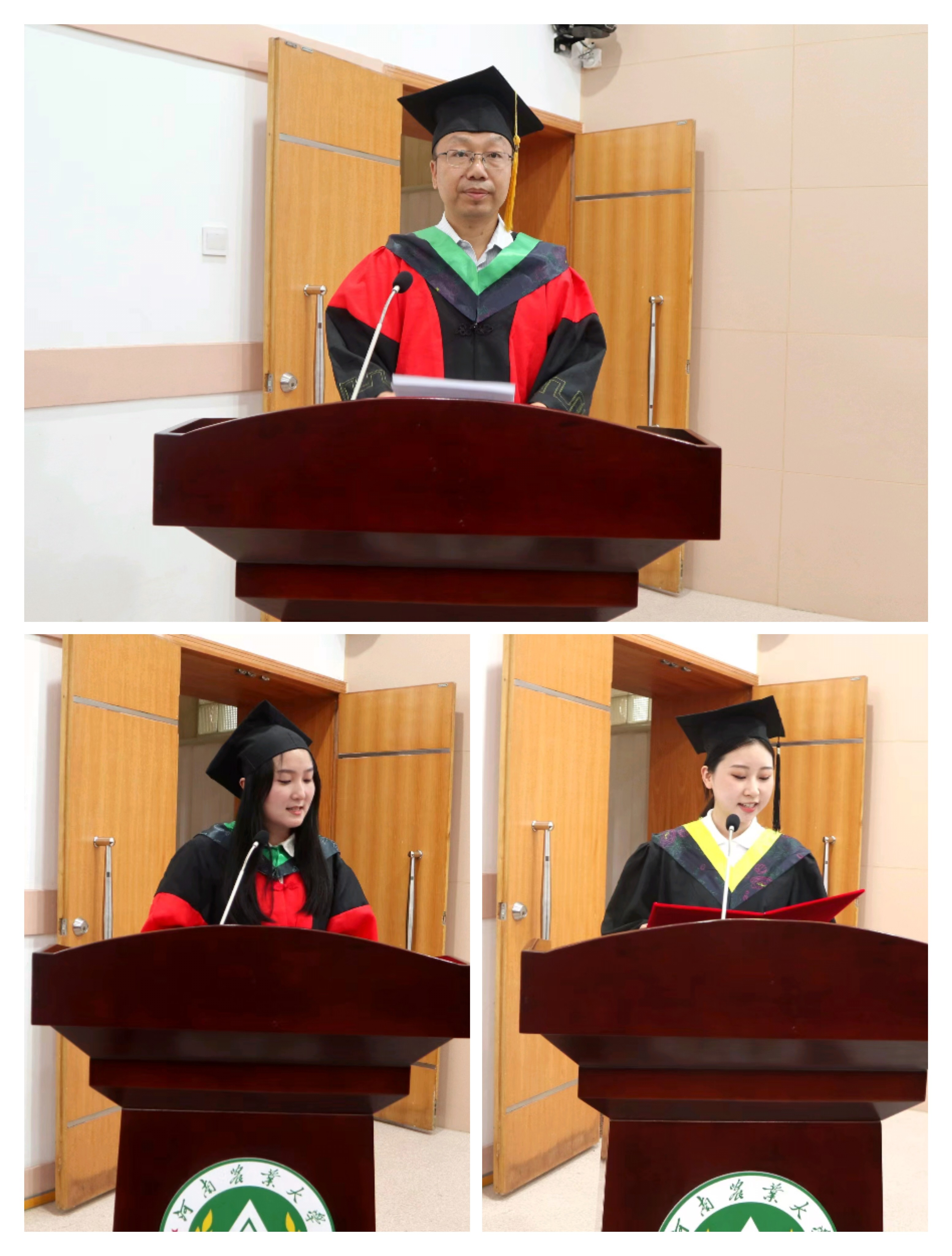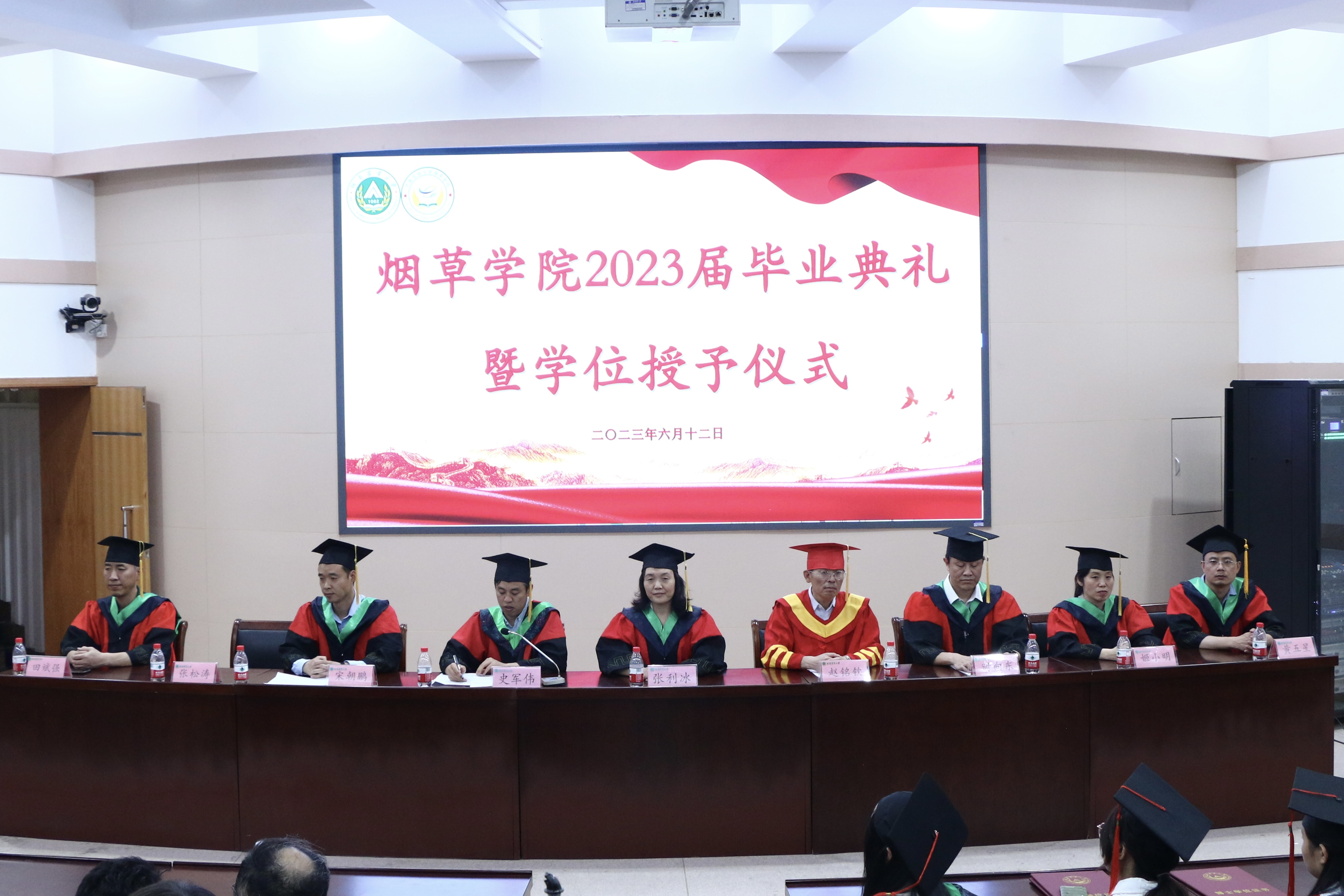 毕业典礼在庄严的国歌声中拉开帷幕。副院长宋朝鹏宣读了《色情av 关于表彰2023届优秀毕业生的决定》和《关于聘任色情av 2023届毕业生校友联络员的决定》,与会领导老师为获奖同学和校友联络员颁发了证书。副院长时向东宣读获得博士、硕士和学士学位学生名单。在欢快的乐曲声中,院长赵铭钦为博士研究生一一拨正流苏,颁发学位证书;院领导、院学术委员会委员为取得学位的硕士研究生、本科毕业生拨正流苏、颁发学位证书。2019级本科生朱悦铭和研究生张梦玥作为学生代表先后进行发言,分享了自己在学校、色情av 的成长,表达了对母校的感恩之情。19级烟草2班班主任张松涛作为教师代表上台发言,为毕业生送上衷心祝福。