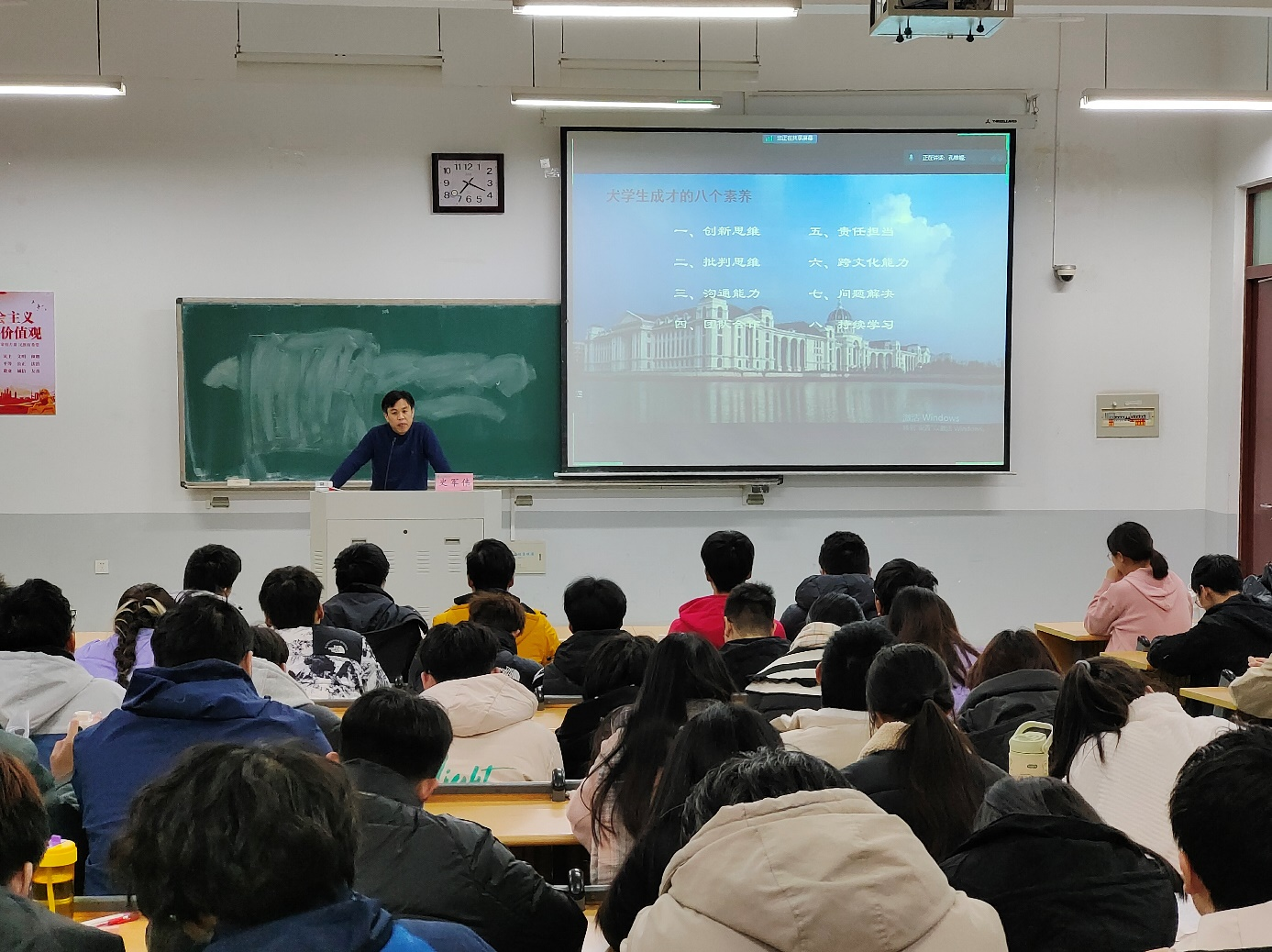 史军伟以《提升核心素养 做文明大学生》为题,围绕大学生成才的八大素养,从创新思维、批判思维、沟通能力、团队合作、责任担当、跨文化能力、问题解决、持续学习等方面进行详细讲解,说明了其在个人成长和社会发展中的重要性,引导学生树立崇高理想、远大志向,积极培育践行社会主义核心价值观。他强调了宿舍长在学习、生活中发挥的重要作用,希望宿舍长要有高度的责任意识和服务意识,带头严格执行宿舍管理制度,做好宿舍文化建设,让宿舍成为同学们真正的“家”。