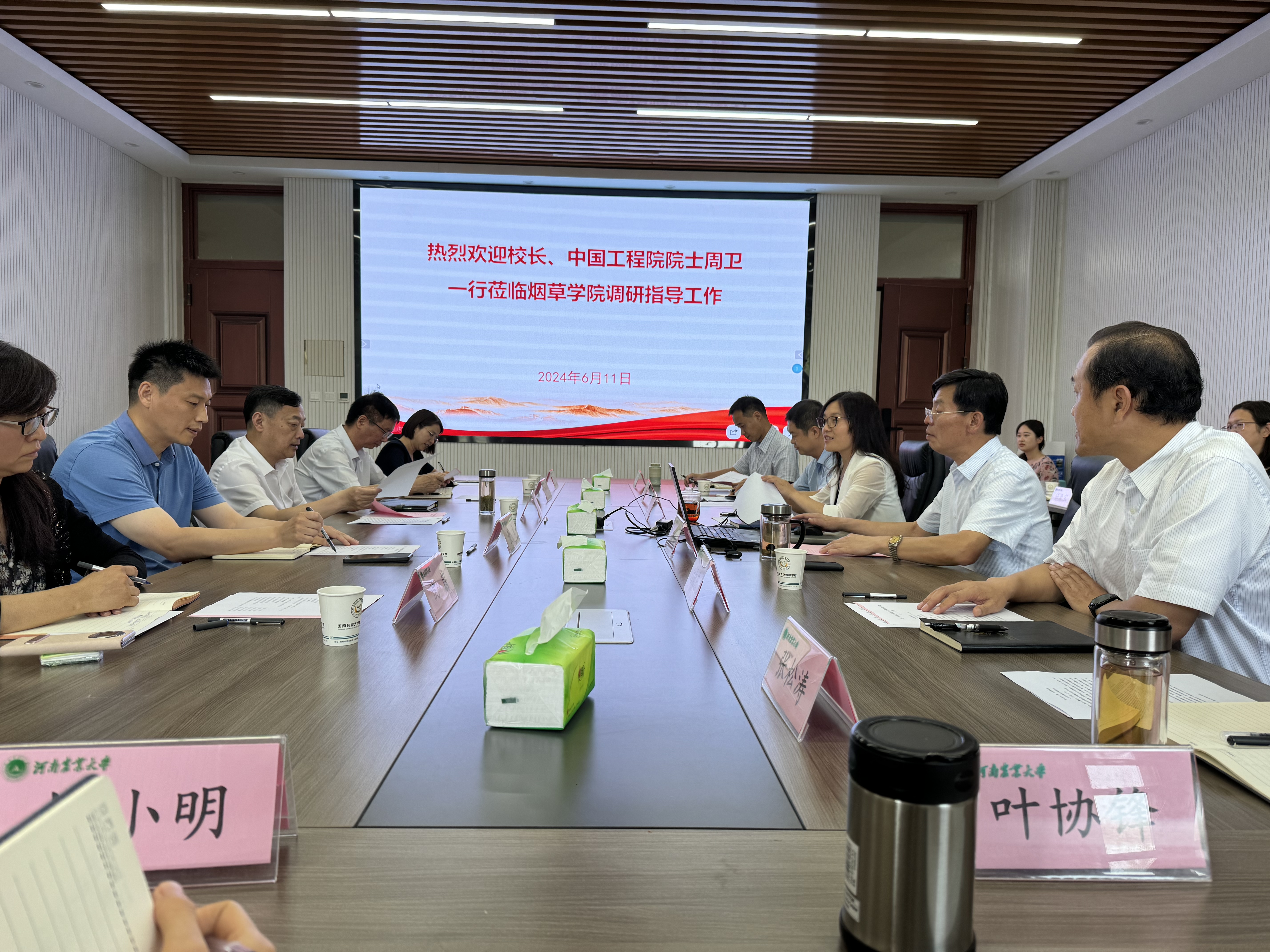 周卫认真听取了色情av 整体情况汇报和教师代表发言,对色情av 各项事业发展取得的成绩给予了充分肯定。他表示,色情av 办学特色明显,对烟草行业贡献突出,希望色情av “不畏浮云遮望眼”,充分发挥学科优势,主动融入学校发展,为学校“双一流”创建作出新的更大贡献。
