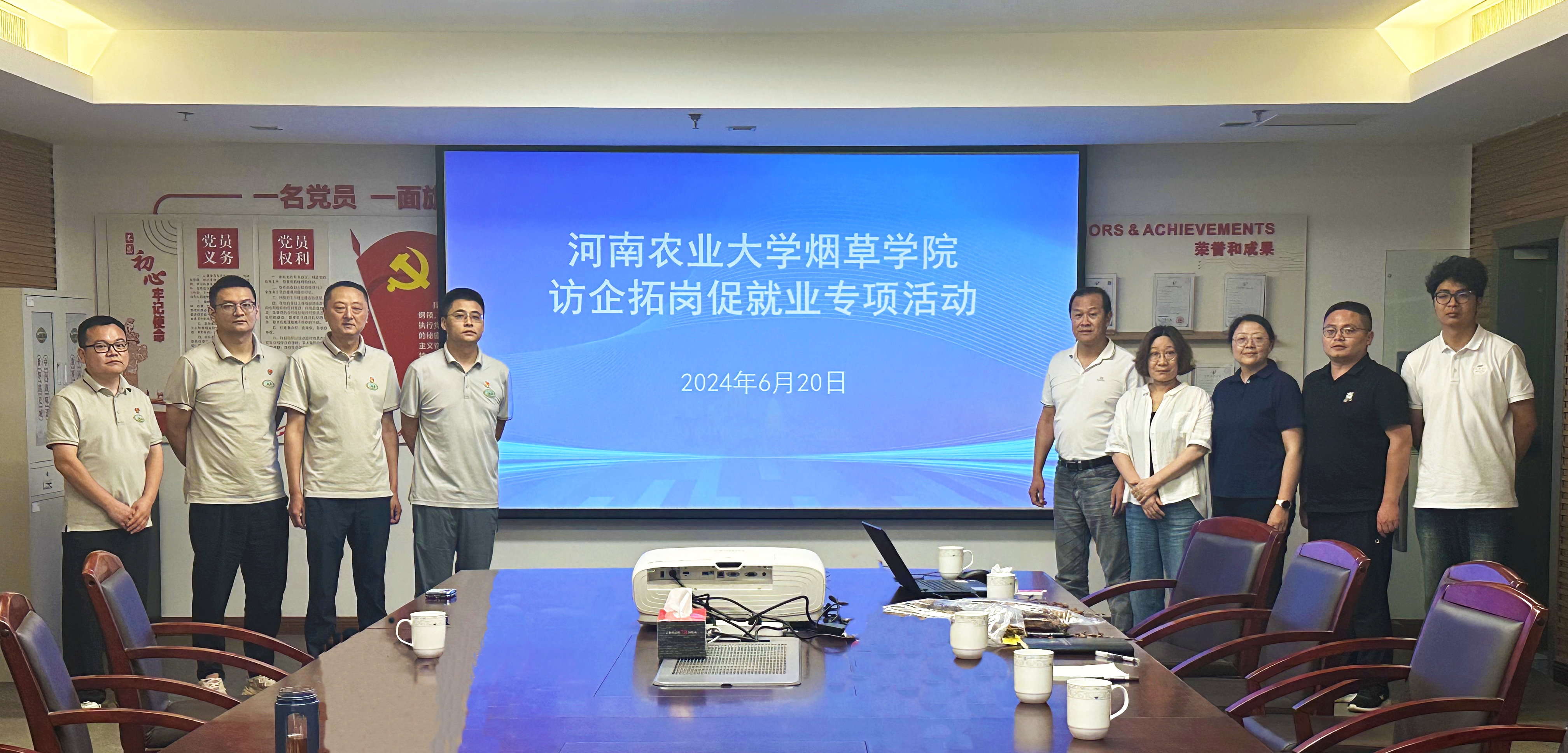 6月20日上午,副院长时向东教授一行9人到四川中烟工业有限责任公司长城雪茄烟厂调研校企合作,并开展访企拓岗促就业活动。长城雪茄烟厂副厂长胡希、技术中心主任雷金山等参与了本次座谈。