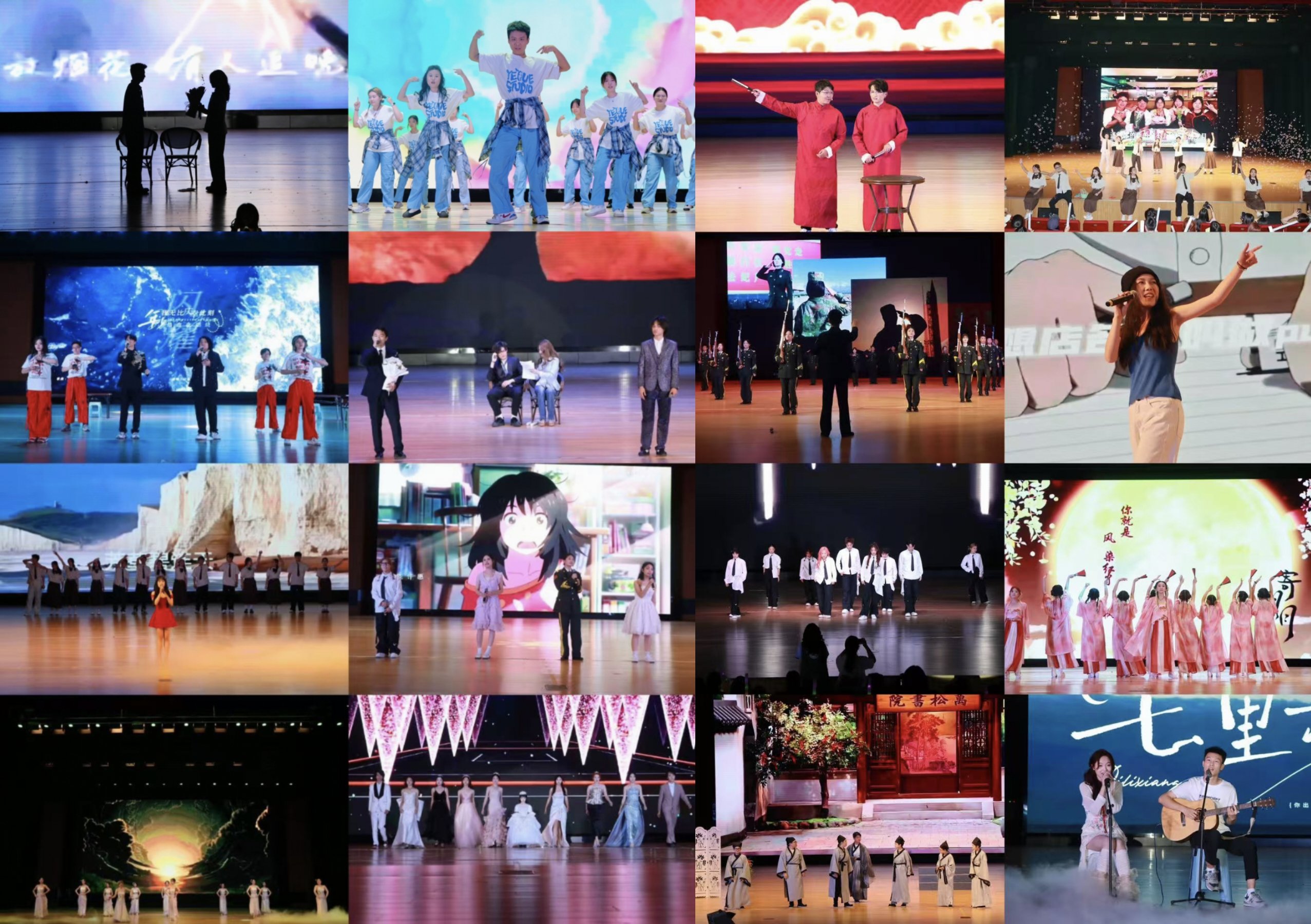 伴随着24级新生带来的活力四射的开场舞《奔跑的青春》,晚会正式拉开帷幕。《Hey Kong》《七里香》《日不落》等7首歌曲以动人旋律唤醒青春记忆;退役复学学生代表和校国旗护卫队成员带来的歌舞表演《强军战歌》,铿锵有力的动作、激昂嘹亮的歌声,尽显军人的飒爽英姿与家国情怀;相声《我们的大学生活》与情景剧《万松书院》用幽默与深刻诠释校园生活;《咆哮》《彩云之南》《寄明月》三支风格各异的舞蹈,或热烈奔放,或柔美婉约,将青春的活力与风采展现得淋漓尽致。"时光长廊"节目中,院领导老师身着不同年代服饰惊艳走秀,举手投足间尽显别样魅力,或优雅从容,或风趣俏皮,拉近了与学生之间的距离;毕业班班主任深情朗诵《再一次出发》,字里行间饱含着对学生的殷切期望与谆谆教诲,化作一行行动人的诗行,温暖着每一位学子的心田;教师合唱《四季光阴里的师语叮咛》,用真挚的歌声传递着对毕业生们的美好祝福,如春风化雨,滋润着大家的心灵。最后全体师生齐唱《送别》,悠扬歌声中饱含依依惜别之情。整场晚会既有青春激扬的活力,又蕴藏师生深厚情谊,为毕业生的大学生活画上温暖且圆满的句点。