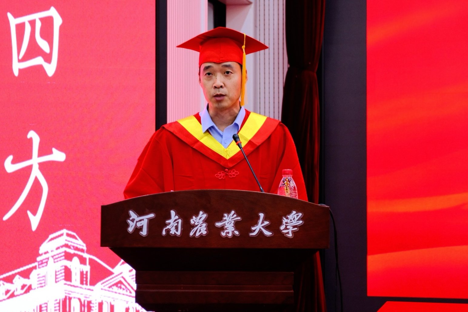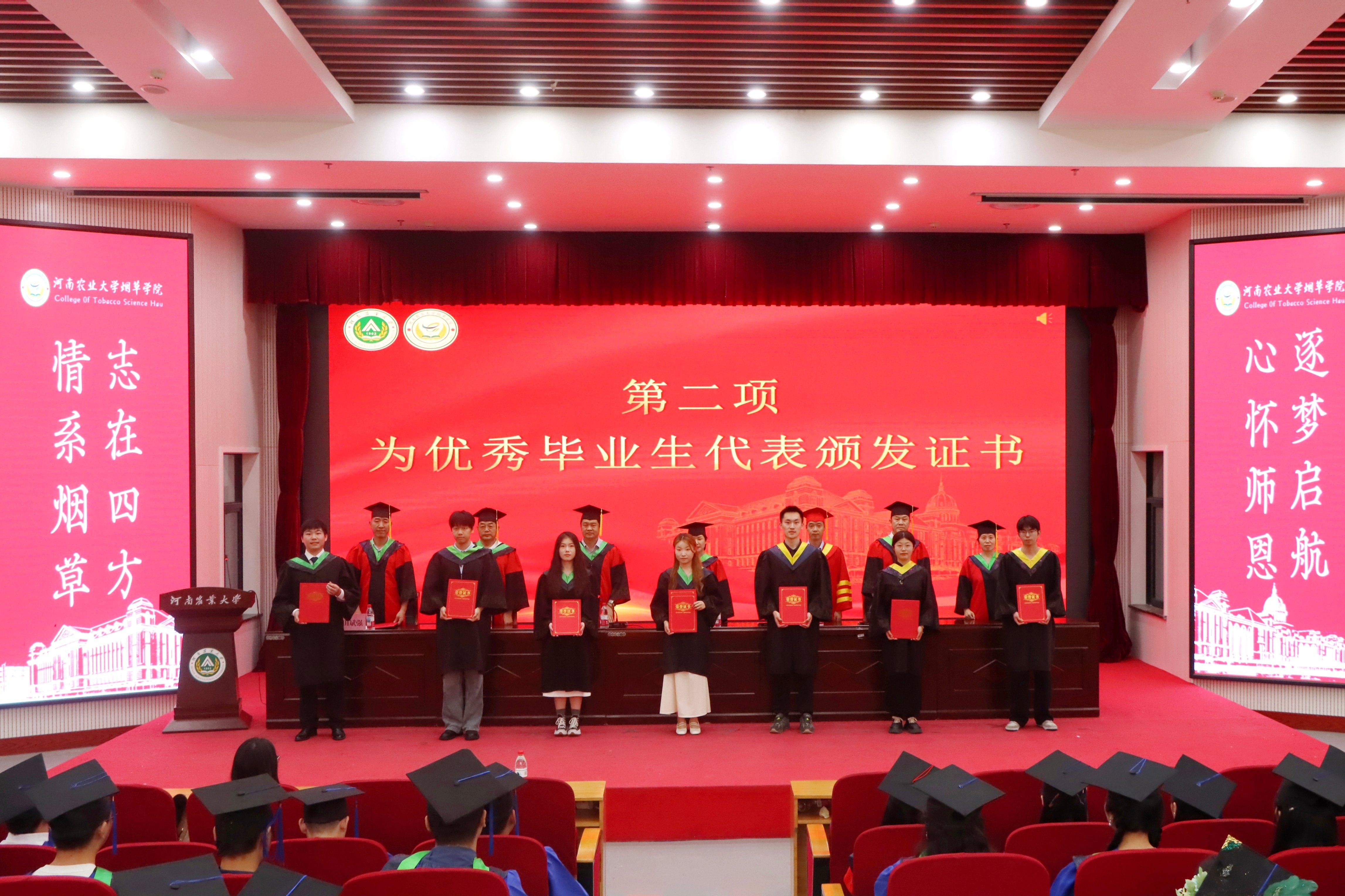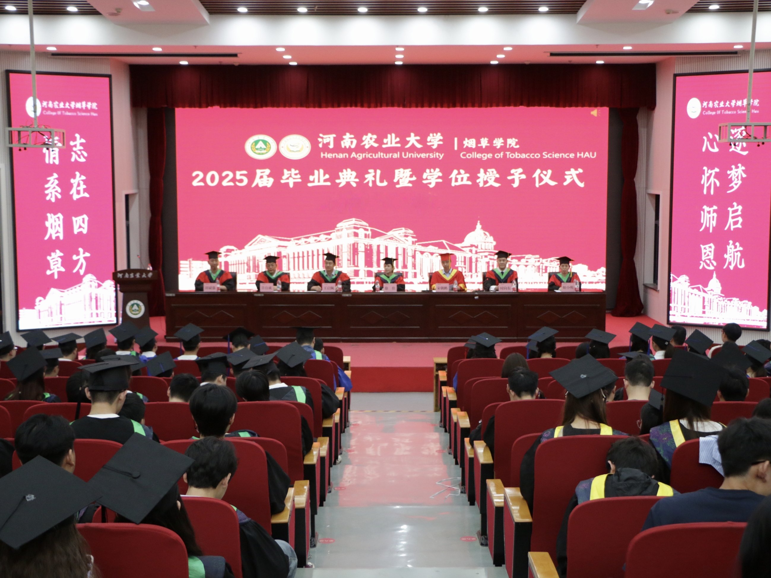 发展,在课堂学习中积淀理论素养,在科研实践中锤炼专业能力,在志愿服务中涵养社会责任。他对2025届毕业生提出四点期望:一是要坚持学习,追求卓越。希望同学们保持对知识的渴望和好奇心,勇于探索、敢于创新,不断追求卓越,努力成为行业的佼佼者;二是要敬业奉献,勇担责任。希望同学们秉持敬业奉献的精神,在工作中认真负责、一丝不苟,为行业发展和社会进步贡献自己的力量;三是要诚信做人,踏实做事。希望同学们在今后的人生道路上,做到诚实守信、言行一致,一步一个脚印地实现自己的人生目标;四是要心怀感恩,回馈社会。希望同学们心怀感恩之情,用实际行动回报家人、老师和同学,为构建和谐美好的社会贡献自己的一份爱心。他鼓励同学们坚定信念、守正创新,以农大人的底色和烟草人的担当,向下扎根、向阳生长、向光而行,奔赴属于自己的星辰大海。