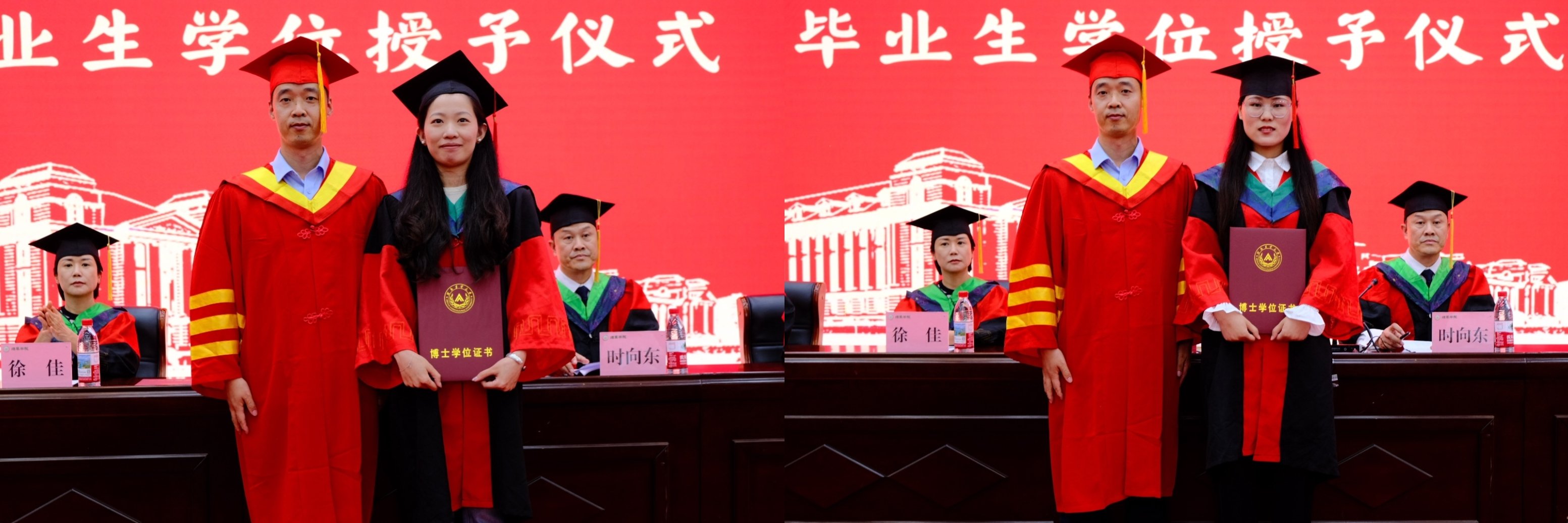 在随后举行的学位授予仪式上,宋朝鹏为博士学位获得者一一拨正流苏,颁发学位证书。院领导和院学位委员会委员共同为2025届毕业生拨正流苏、颁发学位证书。