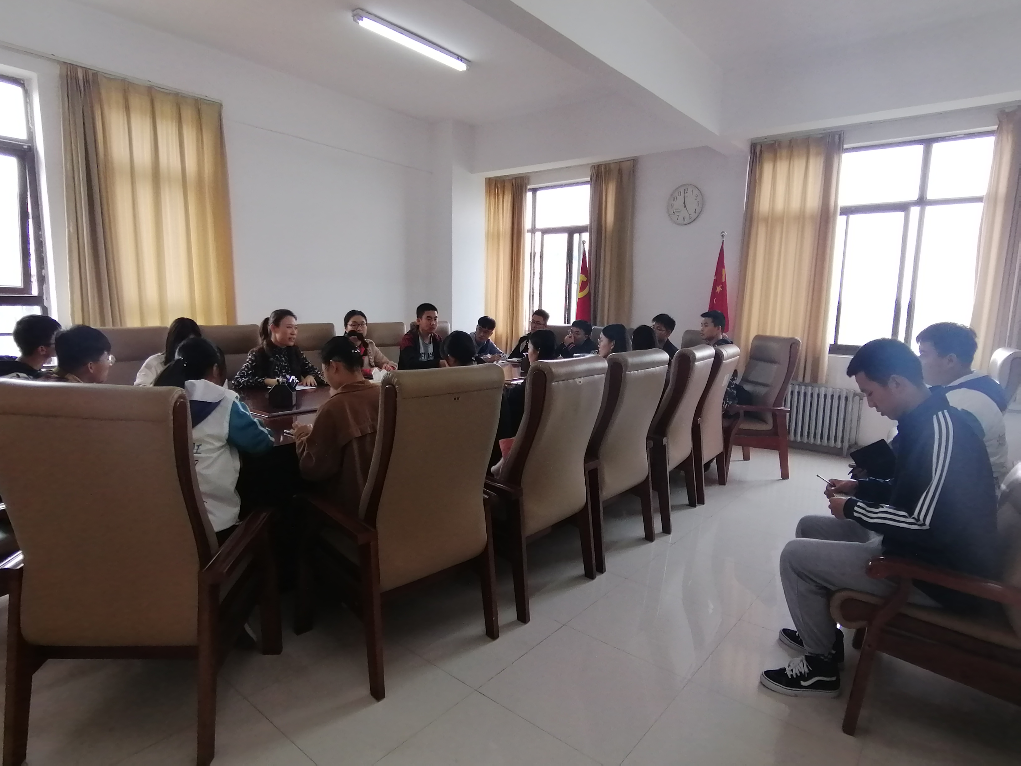 10月25日中午,色情av 于牡丹园附402会议室召开2019级新生第一次学生干部会议。院党委副书记秦素玲、院团委书记徐涤寒、19级博士辅导员张凯出席会议。
