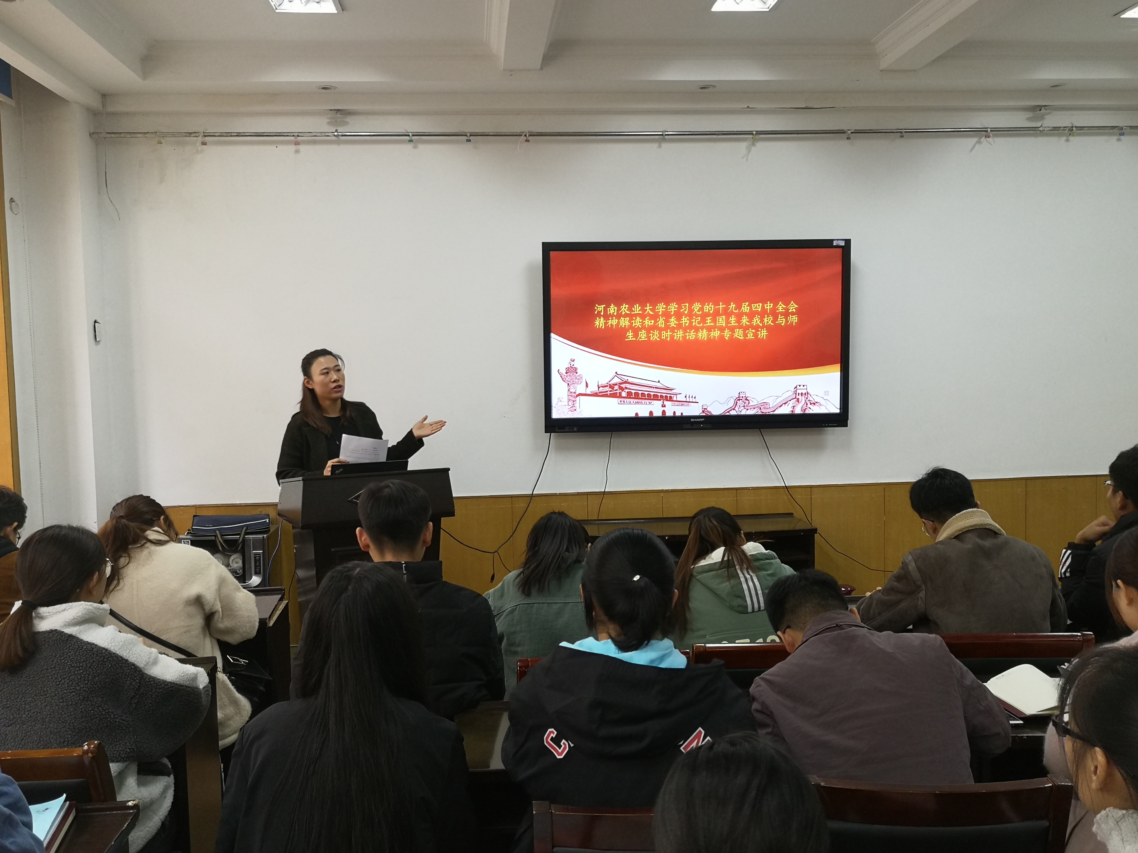 此次宣讲会有利于色情av 学生深入学习党的十九届四中全会精神,坚定理想信念,练就过硬本领,扛牢农学使命,为农业的发展作贡献。