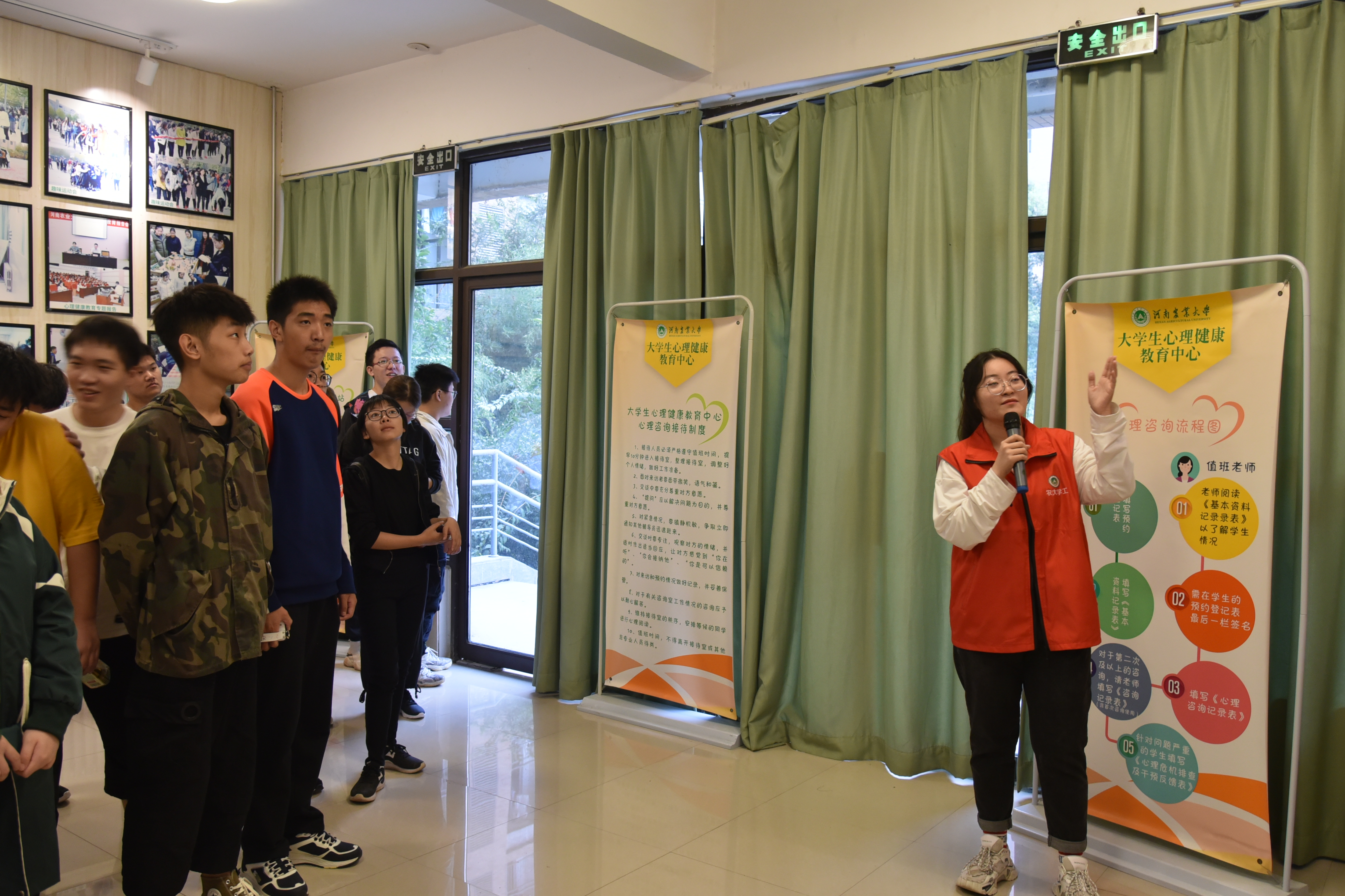 参观学校心理健康教育中心是入学教育的重要组成部分,有利于新生树立心理自助意识,学会主动寻求心理帮助,学会关注并维护自身心理健康。