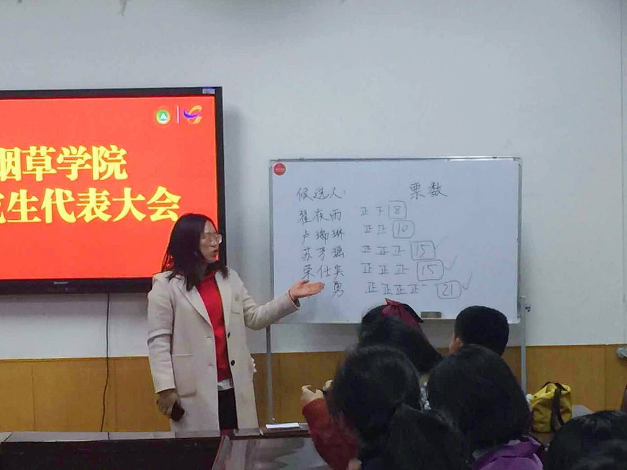 此次会议由宣读大会代表条件、候选人自我评述和参会人员投票三方面组成。此前经过层层选拔,共有5位候选人参选,覆盖各年级各班级,充分体现参选代表的广泛性和先进性。会议伊始,王雪婧给同学们详细讲解了代表选举的产生办法,随后,各位候选人从思想政治、道德品行、作用发挥、执行纪律等方面进行两分钟自我评述,最后由全体研究生代表进行无记名投票投票。根据评选规则,最终选举出苏芳瑶,荣仕宾和罗勇3名研究生作为色情av 研究生代表参加色情av 第十次学生代表大会。