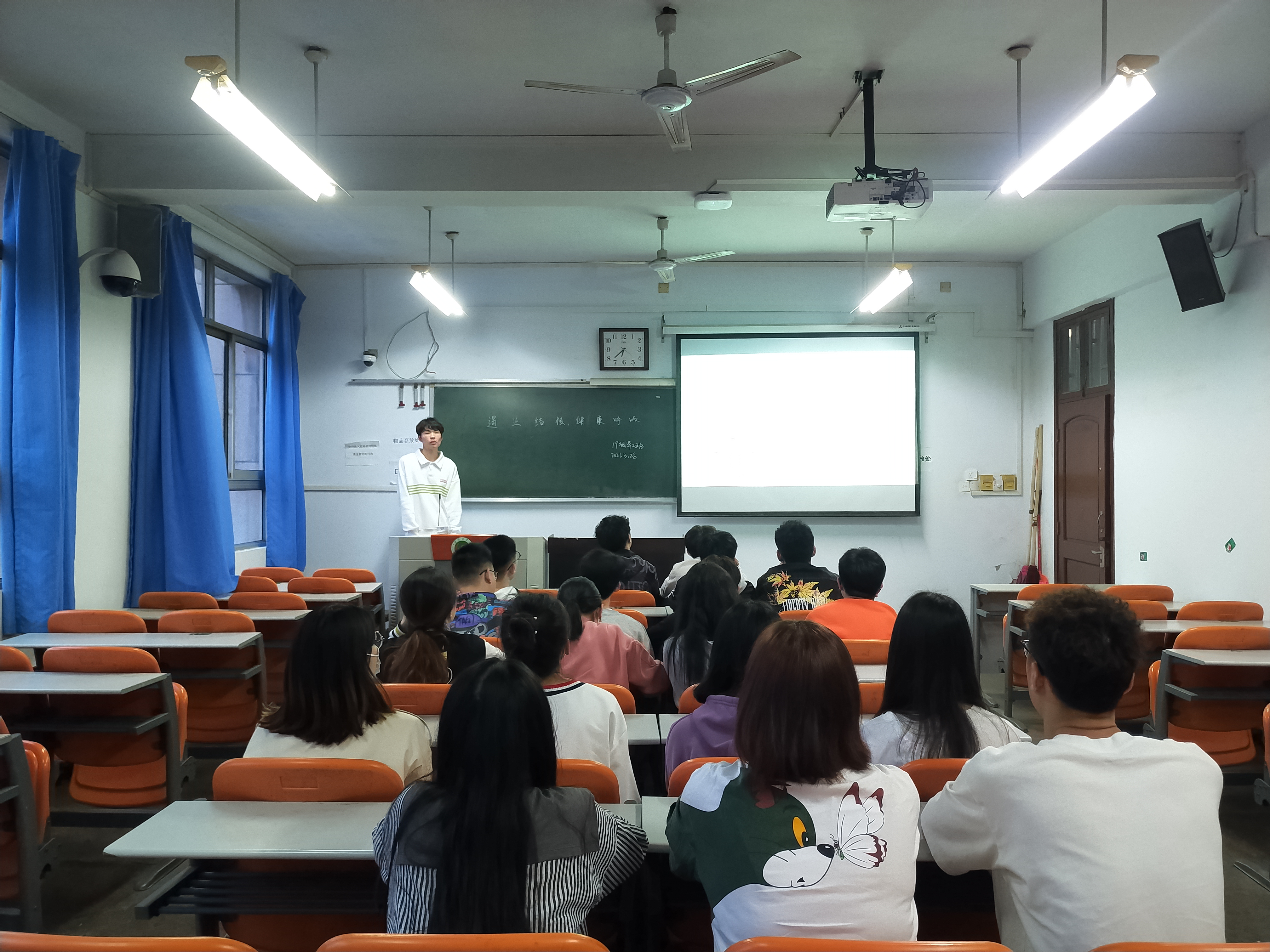 活动上,团支书带领支部成员学习院团委微信公众号推文《携手抗疫防痨,守护健康呼吸》,初步了解结核病的症状、传播途径、易感人群、常见误区及治疗“十字”原则等相关知识。随后通过观看漫画、PPT展示、播放视频、小组讨论等方式进一步学习了结核病的主要病因、治疗周期和预防措施,并邀请学生填写相关调查问卷以加强学习成果的巩固。学生们纷纷表示将会在日常生活中树立良好的卫生、生活习惯,保证充足的睡眠,加强体育锻炼,做好自我防护。
