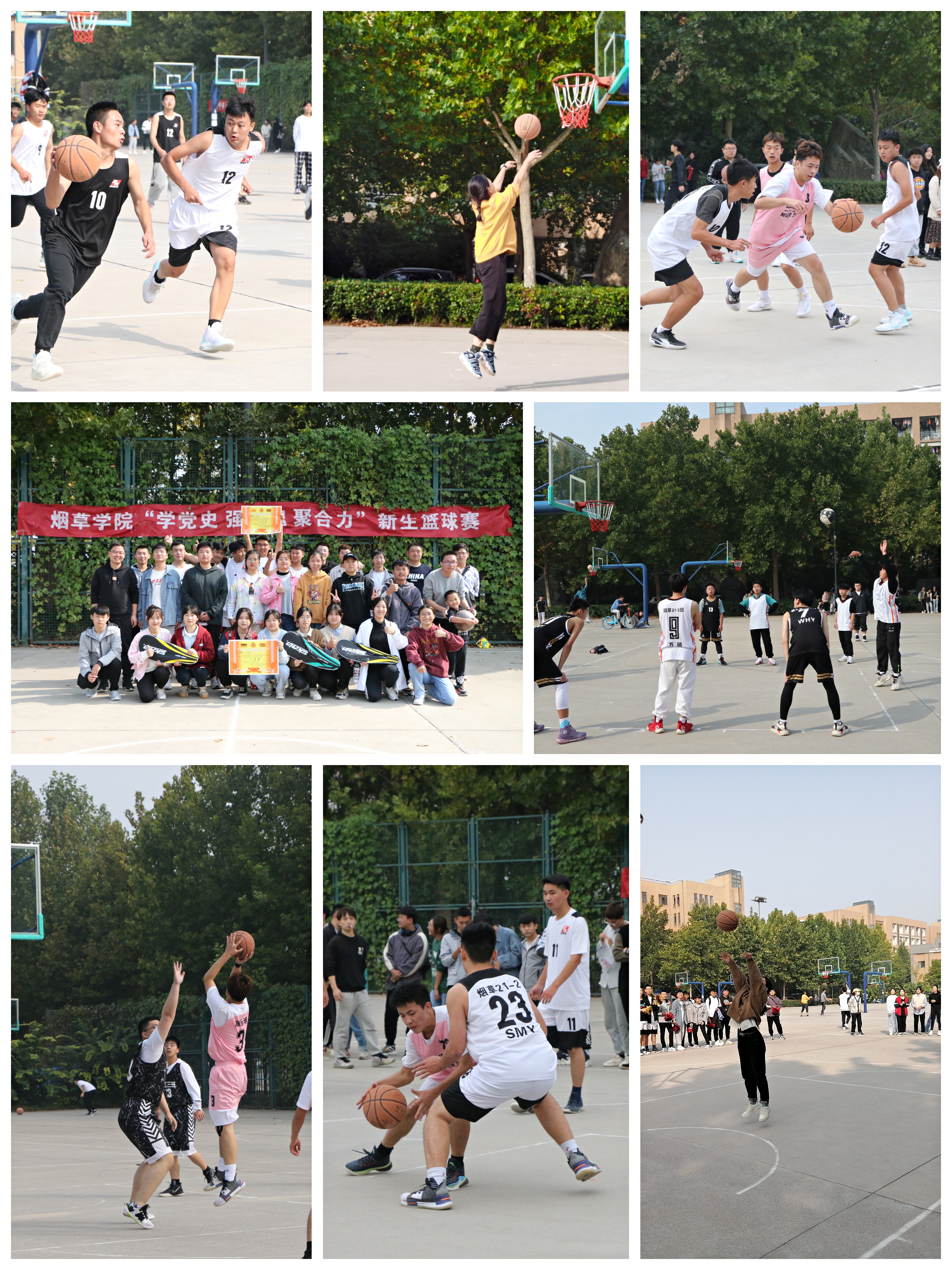 本次比赛分男篮、女篮两个项目,共有16支队伍参加比赛。随着比赛哨声响起,队员们迅速投入激烈紧张的比赛当中,比赛双方不甘示弱,空中接力传切配合,胯下运球漂亮迅速,进攻防守配合默契,啦啦队在一旁呐喊助威,经过淘汰赛、半决赛、决赛的激烈比拼,烟工香料21-4班、烟草21-2班分获男篮冠、亚军,烟草21-2班、烟工香料21-3班分获女篮冠、亚军。