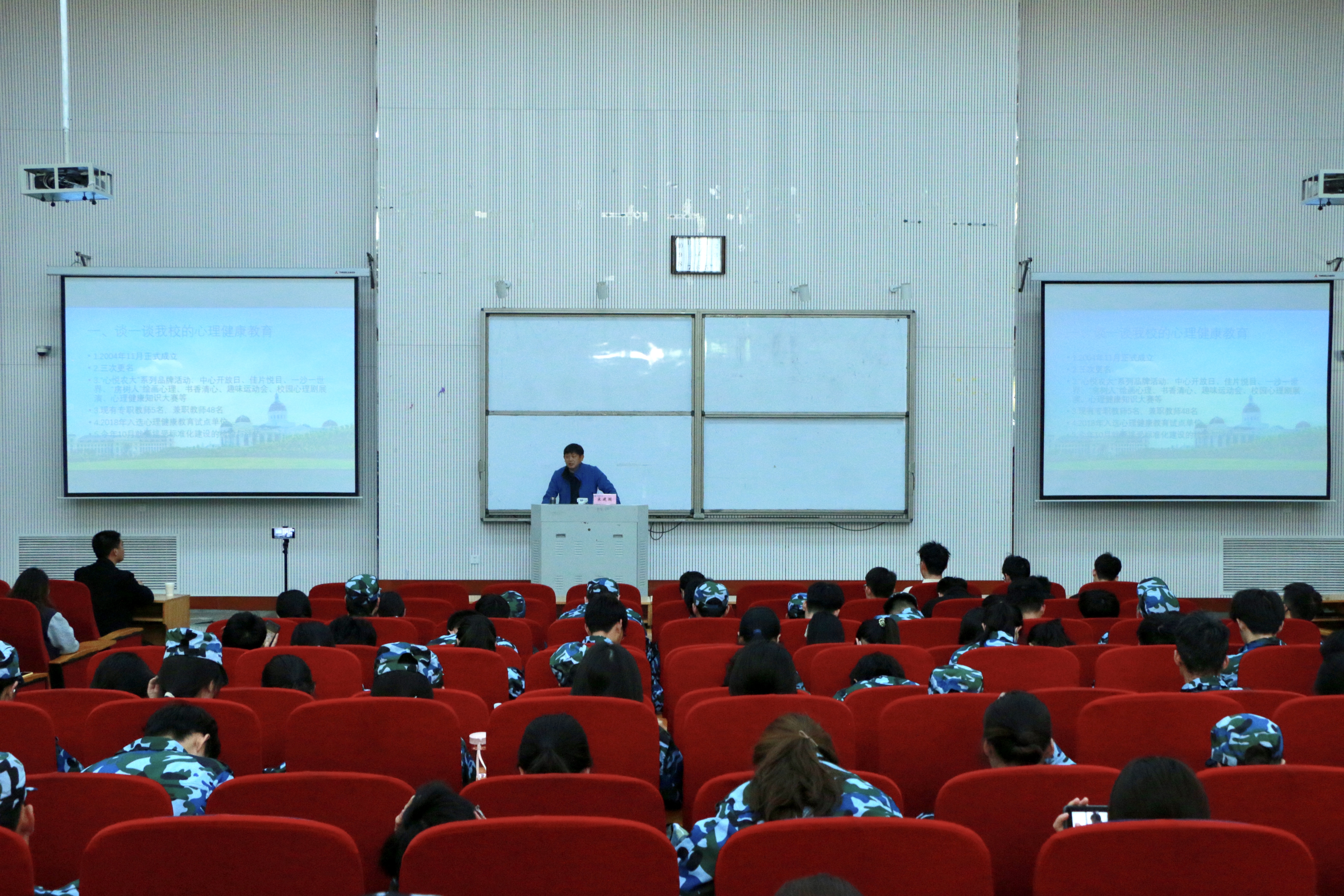 心理健康教育中心宋建国主讲,2021级全体学生参加。报告会由博士辅导员张凯主持。
