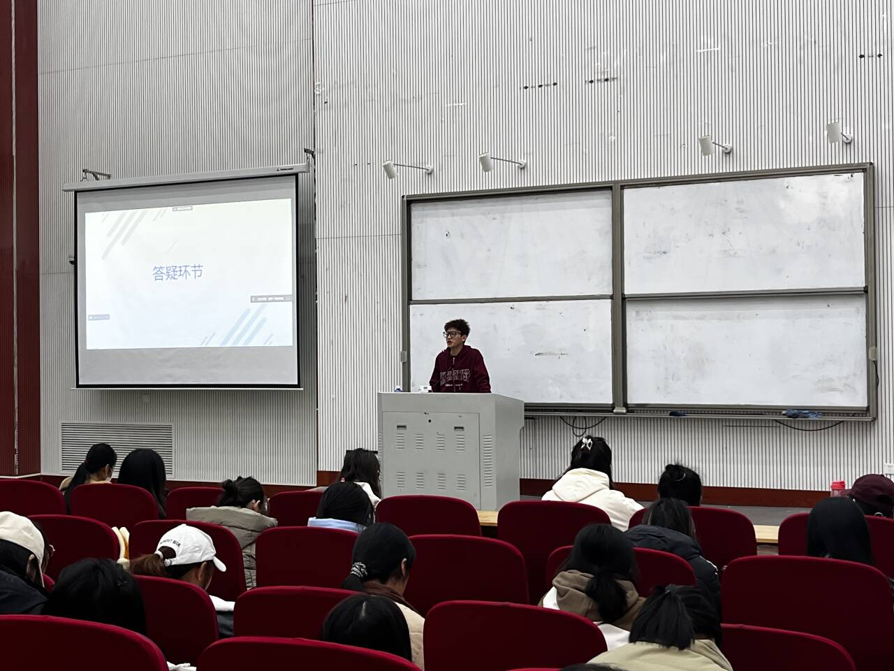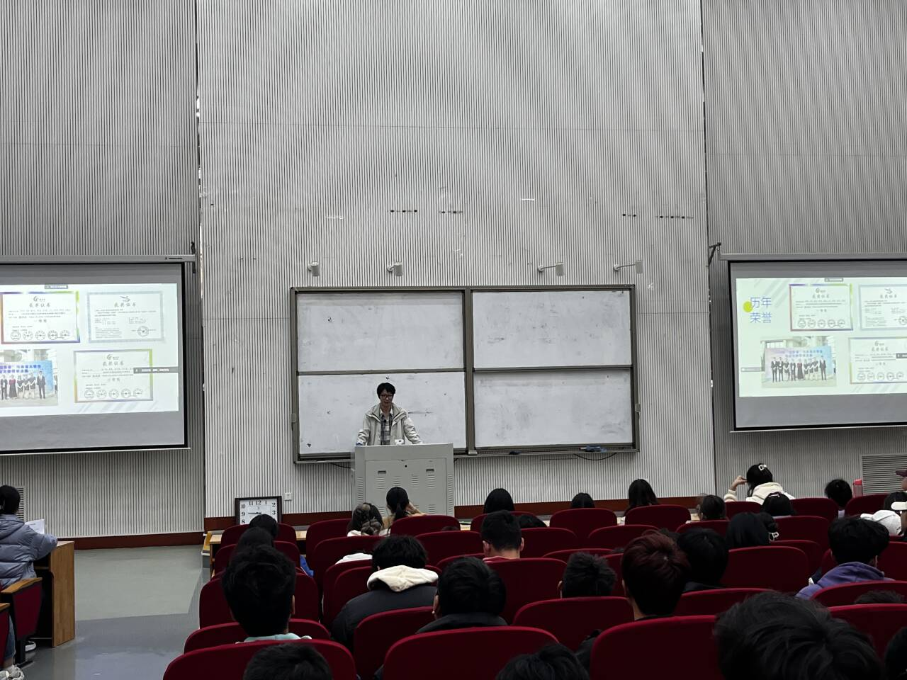 宣讲会中,平家宁从宗旨、内容、流程、申报范围及奖惩五个方面详细介绍了大学生科技创新训练计划(TIA计划),并且向同学们展示了往届的优秀参赛作品。同时,本次宣讲会邀请到了第九届中国“互联网+”大学生创新创业大赛河南省三等奖团队成员鲁汉。在会中,鲁汉分享了参加TIA计划的亲身经历,并且给了同学们一些实用的参赛建议,鼓励大家积极参与,亲身投入其中。在随后的提问环节中,科创部部长陈林杰补充了关于TIA活动的注意事项,为提出问题的同学解惑。最后,平家宁鼓励学生将个人兴趣与就业发展前景相结合,选择适合自身的TIA项目,带着明确的目标、坚定的信念饱满的热情,不断努力,锐意进取,收获属于自己的成果。
