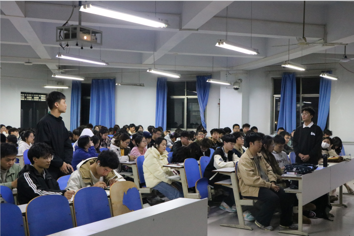 于桃西楼西604召开“国奖标兵评选暨优秀学生代表经验分享会”。国奖获得者及2024级全体学生参加会议。