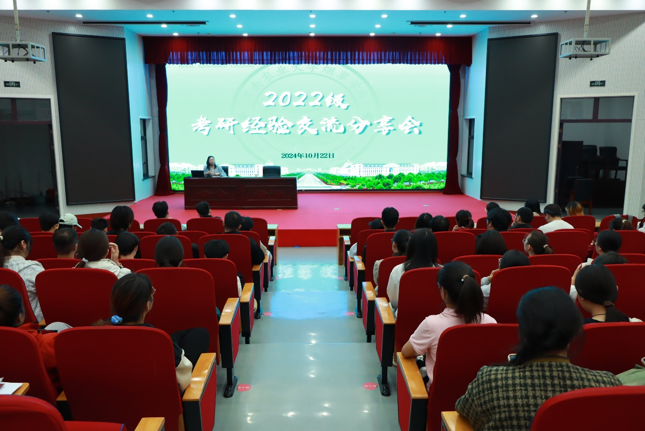 会上,曾婉莹、吴亭萱、陈晶等3位来自不同专业的研究生分享了他们的考研经验和科研生活。曾婉莹分别介绍了不同时间节点复习专业课的策略、现阶段英语学习的技巧及备考过程中劳逸结合的方法等。吴亭萱重点讲述了学生干部如何有效平衡工作与学习的关系,分享了收集考研信息的渠道与方法,强调精准定位目标对于考研成功的重要性。陈晶推荐了一系列实用的参考资料与学习 APP,并建议大家逐步调整心态,保持坚定信念和良好作息的方法,鼓励同学们在考研路上要坚持不懈,勇往直前。在互动问答环节,同学们积极提问,就自己在学习过程中遇到的困惑,如时间规划、跨专业考研难点、复试注意事项等问题与学姐们进行了深入交流,现场互动频繁,掌声不断。