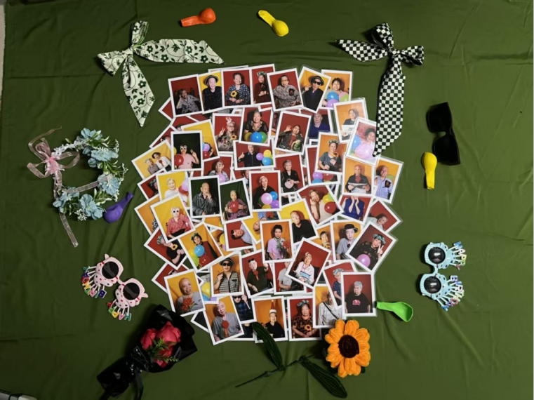 活动中,实践队在养老院活动室搭建了“多彩摄影棚”——以绚丽彩幕作背景,用专业灯光营造温馨氛围。拍摄时,与“岁月讲述者”积极互动,与队伍里的退役士兵和退伍老人聊聊服役片段;为老人别上缀着“好孩子”字样的大红花。面对行动不便的老人,队员们则是携带设备穿梭在楼层间,举起幕布当移动背景,在床边、轮椅旁捕捉鲜活瞬间。给卧床的爷爷奶奶拍摄时,队员在举着补光灯调整角度的同时,也陪老人唠起年轻时的韶华。