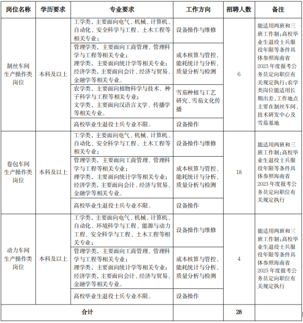 地址:海南省海口市国家高新技术产业开发区云龙产业园海南红塔卷烟有限责任公司人力资源部
